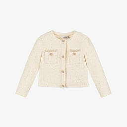 A lovely ivory bag for girls by Abel & Lula, with a lightly textured finish. The main compartment is fully lined and fastens on the top with a chic purse clasp. It comes with two detachable straps so it can be carried in the hand or over the shoulder. There are gold studs on the base so the bag stands upright when placed on a surface.