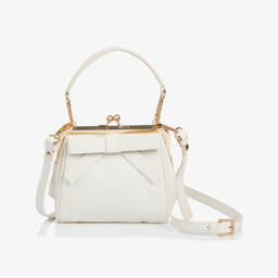 Beautiful off-white floral print dress for girls by Angel's Face, with the brand's signature heart charm and bow detail on the neckline. It is made in layers of soft, fine tulle with delicate ruffles and a gently flared silhouette. Comfortably lined in soft jersey, the dress fastens at the back with a stylish keyhole button.