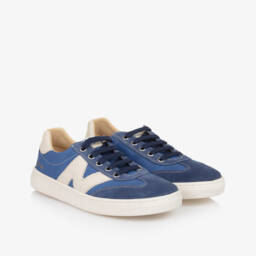 Navy blue moccasins for boys by BOSS, made in soft smooth leather. This smart slip-on design features a tonal embossed logo across the front and a black rubberised logo on the heel. Traditionally styled, they have stitching details around the toe and heel and chunky non-slip pebble grips on the outer soles.