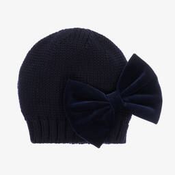 A lovely red hat for girls by Italian brand Catya, with a gorgeous oversized velvet bow on the front. Cosy and warm, it is knitted in luxuriously soft Merino wool with a ribbed brim.