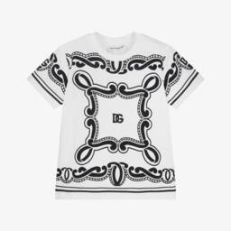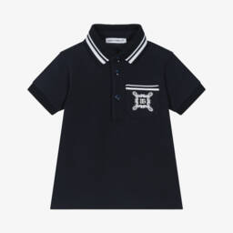 Casual navy blue shorts for baby boys by luxury Italian designer Dolce & Gabbana, made in soft and lightweight cotton piqué. They have a white bandana pattern along the hem and a DG logo embroidered on the back pocket. For a better fit, they fasten with a drawstring.