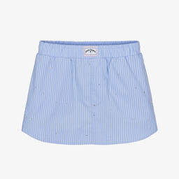 White sports skort for girls from EA7 Emporio Armani, part of the brand's Tennis Pro collection. Made for easy movement, it is made in VENTUS7 technical fabric and has built-in shorts for confidence while active. The brand's iconic EA7 and Eagle logos are printed in contrasting black for a designer finish.