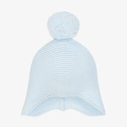 Soft and cosy, this beige knitted hat for baby boys and girls is by British brand Emile et Rose. In a timeless style with a large pom-pom on top, it is shaped to cover little ears and keep them warm.