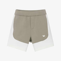 Casual and comfortable for little boys, these light blue and ivory colourblock shorts are by Emporio Armani. Made in super soft, cotton-blend jersey, they have an elasticated waist for comfort and speedy dressing. On the front are useful, concealed, on-seam pockets and an embroidered ivory Eagle logo for a signature look.
