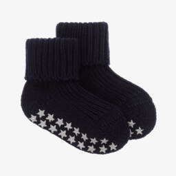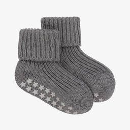 Brown slipper socks for baby boys and girls by Falke, durably knitted in a soft cotton blend. Ergonomically designed, these socks are cushioned to comfort little feet, with folded ankle cuffs for added cosiness. The soles are finished with rubberised non-slip pads, supporting your little one as they take their first steps.