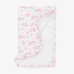 Patterned with a lovely blue floral print, this delightful blanket for baby girls by Kissy Kissy, is trimmed with a pretty ruffle. Made in a double layer of super soft Pima cotton jersey, it is ideal for use in the nursery or when out and about in the pram or stroller.