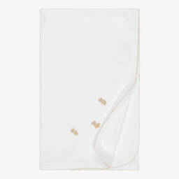 Patterned in pink teddy bears for an adorable look, this white babysuit set for girls is by Kissy Kissy. Gentle on delicate skin, it is made in super soft Pima cotton jersey. The babygrow features a practical two-way zip fastening, with a protective chin guard and fold-over scratch mitts on the smaller sizes. The bib has an absorbent towelling lining and the matching hat has cute little ears on top.