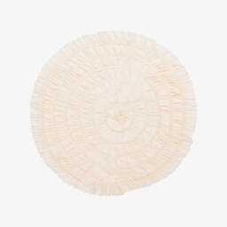 White blanket for baby girls by Lemon Loves Layette, made from beautifully soft Pima cotton jersey. In a round shape, this lovely blanket is covered with gorgeous spiralling ruffles. Ideal for use when out and about as a lightweight, yet cosy cover, or in the nursery as a comfortable area to lay baby on.