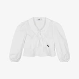 Mini-me, blue denim jacket for girls by MARC JACOBS, made in cotton. It sparkles with clear crystals across the shoulders and along the sleeves, elevating this classic casual style with a designer touch. Fastening with branded poppers, it has front pockets and faux chest pockets. A jumbled logo jacron on the back completes the look.