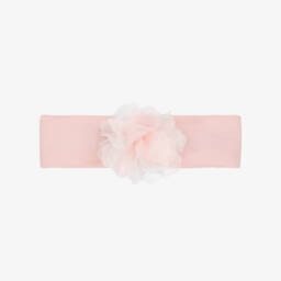 A white headband for baby girls from Mayoral, made in soft cotton-blend jersey. A beautiful white 3D flower decorates the top and the back is gently elasticated for a comfortable fit on your little one's head.