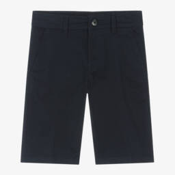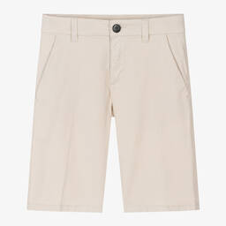 White cotton chino shorts for older boys by Mayoral Nukutavake, for smarter days. Lightweight and comfortable, they are Bermuda length, with an adjustable waist for a great fit and useful pockets.