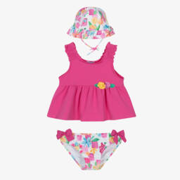 Blue poncho towel for girls by Mayoral, made in soft, absorbent cotton towelling. Patterned with a lovely fruit and flower print, with a strawberry design on the hood, it slips on easily over the head and is ideal for use by the pool, on the beach or after bath time.