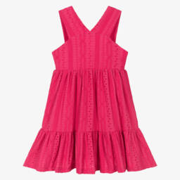 Coral pink sunglasses for girls by Swedish brand Mini Rodini, with light tinted pink lenses. Lovely for days in the sunshine, these round frames are ideal for accessorising any look. The attached visor features a cute Dachshund dog print on top for a fun addition.