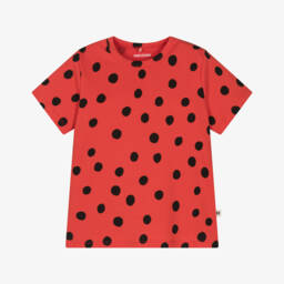 Fun red cycling shorts for girls by Mini Rodini, with a black dot pattern. Great for comfortable, casual wear they are made in soft and stretchy organic cotton jersey.