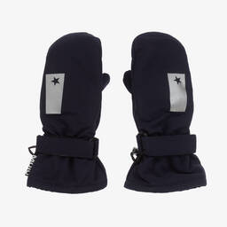 Beige floral print ski mittens for girls by Molo, with reflective trims for improved visibility on the slopes. Warmly padded with technical insulation, these comfortable waterproof, windproof and breathable mittens are lined in cosy polar fleece. They have long, velcro-adjustable cuffs, a clip to attach them together, and slip-resistant palms for good grip.