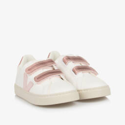 Girls white leather sandals by French footwear brand Pom d'Api, with pretty white and gold daisy appliqués on the front. This lovely open-toe style has a smooth leather insole and an adjustable buckle fastening strap across the ankle for a comfortable fit. They have a non-slip rubber outer sole embossed with little sea shells for a cute finish.