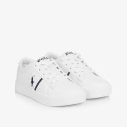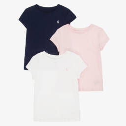 Navy blue and white striped trousers for girls by Ralph Lauren, woven in smooth cotton poplin. This stylish wide-leg design has concealed side seam pockets and a comfortable elasticated waist with a faux drawstring detail.