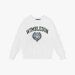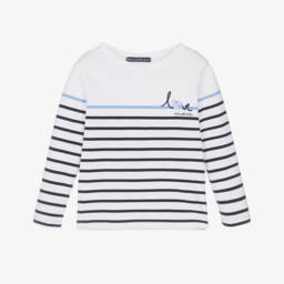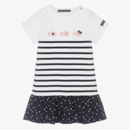 Inspired by the adult collection, this navy blue and white striped sweatshirt for girls is by Ralph Lauren. It is made in a comfortable cotton-blend jersey, with raglan sleeves which fasten with buttons on one side. A small pony logo embroidered in white adds a signature finish.