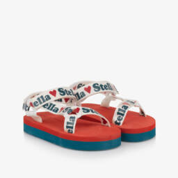 Adorable blue and pink lace-up trainers for girls by Stella McCartney Kids. Made in soft denim, they are embroidered with cute ladybirds and have fun wings on the front. The padded faux leather insole provides cushioning for her feet and the rubberised outer sole improves grip as she walks.