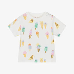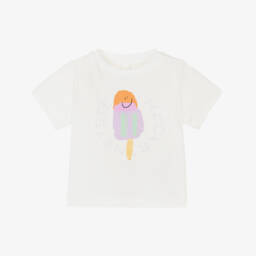 Pale pink joggers for little girls by Stella McCartney Kids, with cute and colourful ice-cream motifs on the front. Made in soft organic cotton jersey, they have an elasticated drawstring waist for an ideal it, with elasticated cuffs and side seam pockets.