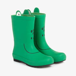 Green sliders for boys and girls by Stella McCartney Kids, ideal for the beach and beyond. They have playful frog faces on each strap and a moulded footbed for ultimate comfort. The rubber outer sole improves grip on slippery poolside surfaces.