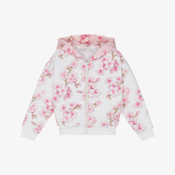 Beautiful white satin skirt for girls by The Tiny Universe, with a tulle overlay covered in blue and pink floral appliqués. Ideal for a special occasion, it has a net underskirt for lots of volume and is easy to wear, simply pulling up.