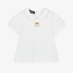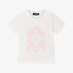 Undeniably Versace, a pink sweatshirt for little girls made in soft cotton jersey. The brand's iconic Medusa logo is printed in metallic gold for a touch of elegance.
